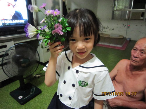 晚上回阿媽家時,阿謙抱著阿媽說,阿媽我愛你。然後阿公在一旁默默的說,都是我去接你下課,你都沒有說你愛我? 阿謙一聽到,馬上顧左右而言他之,我看到她的反應就對她說,啊阿公去接你,你都沒說什麼? 然後她就回頭跟阿公說,阿公我愛你。 阿公就開心了 真是粉好收買的男人心啊!