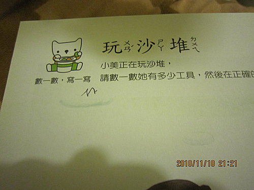 阿謙完成還會在上面畫一下(如下圖),說是老師說的,奇怪,明明沒上學,每天都是老師說同學說。