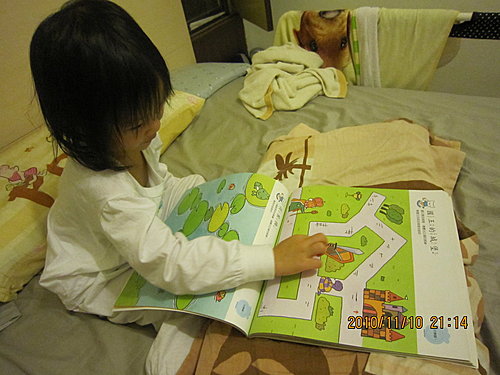 之前買的走迷宮系列,因為完成可以貼貼紙,所以阿謙很愛。這是很適合小朋友玩的,而且,為確定她不會亂走,我都讓她先用手走一次,正確再換筆,因此,一個迷宮等於玩2次,很划算!