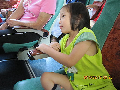一早導遊阿嬌點起歌娛樂大家,她唱黃妃的歌外加熱舞,把一群老人家逗的哈哈笑,連阿謙都好認真的看著她的表演呢~