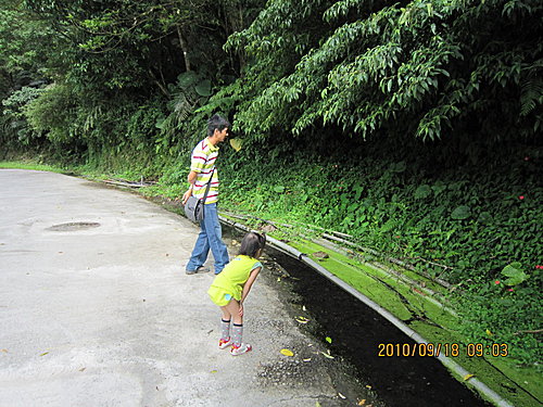 大家都走的很快,只有我們這老弱婦儒,原想在這跟大媽,阿伯,二媽及二媽的媽媽一起拍個合照的,出去玩那麼多次了,都沒拍到團體照,真是可惜!但他們腳程太快,所以我們自己拍囉!看看阿謙又在扮鬼臉,阿公看她沒看鏡頭。