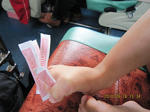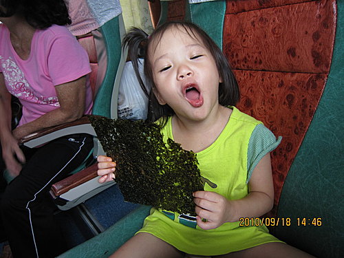 到台中我們去買太陽餅,黑肉看到有賣海苔的,就又買一包給阿謙,瞧她那付嘴臉。。。