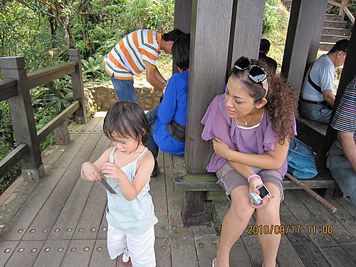 其他人走步道去,我們則在入口處休息,阿謙跟阿公及阿媽一起玩小石子遊戲,同樣是小石子,但3個人玩的都不同