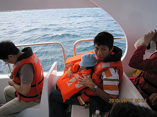 昨天已經是走一天的行程,再加上早起,昨晚的阿謙最最最好睡了,不用多說話,不到3分鐘就睡著了。早上我們坐船去龜山島,一早就出門,坐上船沒多久,阿謙就睡著了,應該不是暈船而是太累了吧!