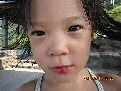 可是沒多久,因為阿謙不要黑肉牽,所以阿謙一個人墊底,沒多久就聽到她大哭,因為她摔下來了,黑肉很生氣的對我說,你看!我更生氣的回他,讓負責任的是你,雖然他不讓你牽,但不代表你可以放她一個人下階梯。我趕過去抱她起來時,發現她摔在一個墓埤旁邊,我心想。。。阿彌陀佛。但換個角度想,也許是先人的保佑,所以阿謙才沒有一直滾下山去。