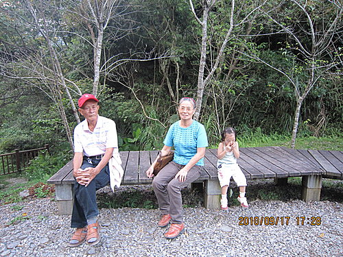 請人家幫我們拍的合照。別以為這樣一天的行程就結束了,我們還去林美步道走走。不過,我讓黑肉去走,我跟阿謙還有阿公阿媽就隨便走走看看,雖然阿謙很輕,不到11公斤,但抱著也很累的