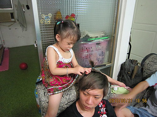 看到沒?還幫阿寶戈戈綁頭髮吔,那真的是她綁的哦!