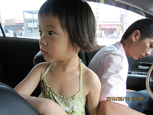 我說,星期五晚上因為比較晚下班,請阿媽帶阿謙下來,結果阿謙上車時,我還沒發現她的拙樣,阿媽大概是怕事後被發現,所以還很有技巧的說,阿謙你沒有給媽媽看你漂亮的頭髮?