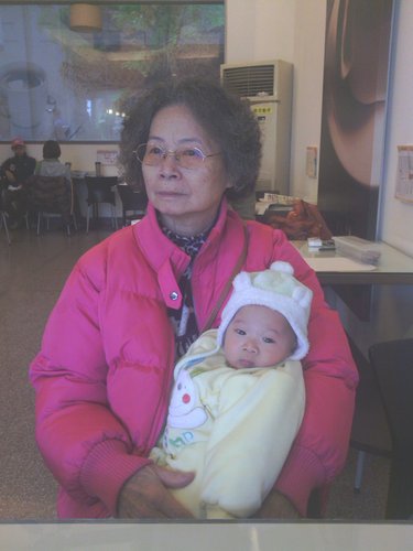跟五姨對話的阿樂仔,五姨幾乎星期一到五都會去阿媽家看阿樂仔,有時餵奶有時哄他睡,所以阿樂仔看到五姨都好開心的。