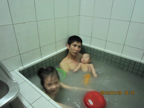 把黑肉給賣了!我們跑去關仔嶺泡湯,阿樂仔很享受的,我想他跟阿謙姐姐一樣,都是愛玩水的小孩。