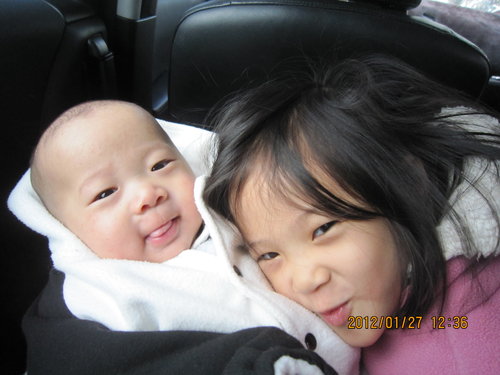 在車上合照一張,2個人都好可愛。好吧!當媽的都很自戀自己的小孩。