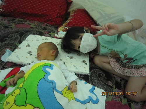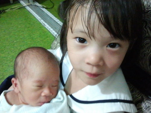 開心開心,一早就先回家洗澡並準備要帶去阿媽家的東西,然後再回醫院接回阿樂。開始我吃吃吃的月子生活。阿謙跟我一起住阿媽家,不過三不五時她就要跟黑肉回去睡,所以,一早黑肉就會載她回來,然後再由阿公阿媽帶她去上學。