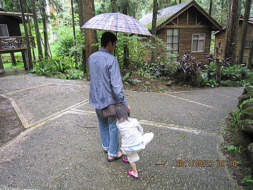 晚上的房間更慘,為了不讓阿謙有身處鬼屋的感覺,我們把電視開的超大聲,這房間沒有浴缸,所以以很迅速的速度幫她洗好。原本的要看螢火蟲的,但雨一直沒停,所以活動取消。在房裏,樓上的一直走來走去,我們不是聽到蹦蹦就是ㄍㄧ乖的的聲音,阿謙一直喊她要去外面,於是我們打電話給櫃台反應,他說會跟樓上的房客講,就這樣拖了一個多小時,阿謙睡著了,我們2個大人卻一直沒辦法入睡,因為真的真的太吵了,這隔間。。。根本就是為重聽的人設的嘛!所以忍到了10點多,我跟櫃台反應,一定要換房間,花了3千元住這樣的房間,真的太糟糕了。幸好飯店以很快的速度幫我們換到4人房,在最頂樓最邊間,阿謙雖被我們挖起來,可是換到舒服的房間,她很快就又睡著了。