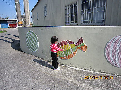 其實,在村裏到處都可以看到馬賽克的作品哦!所謂的處處是驚喜,就是這個意思吧!阿謙都愛這顆大糖果呀!