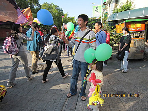 隔天沒排什麼行程,除了順路去找二姨之外,就去找Tracy阿姨,我們一起去台南孔子廟走走,正好遇到基督教的遊行活動,看到聖誕老公公還有拿到汽球。