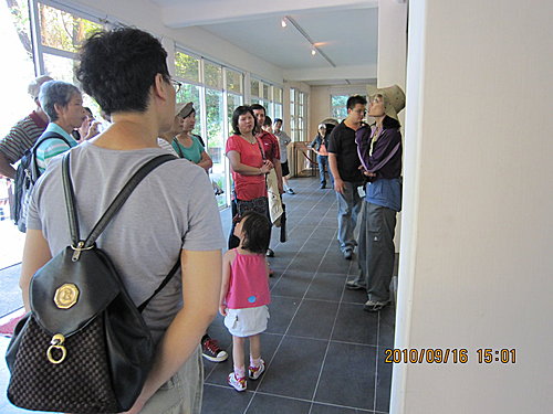 走到廁所時,解說員讓我們大家休息上廁所,好心的阿媽叫阿謙過去一起坐,結果阿謙就愈坐愈過去,害好心的阿媽最後只坐不到一半。