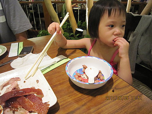 黑肉一到就先去廁所,看著推車來,我點了一個烤乳豬。