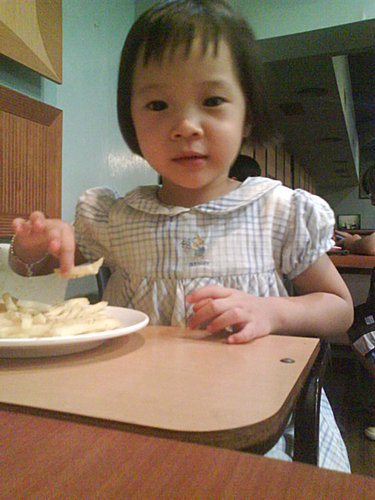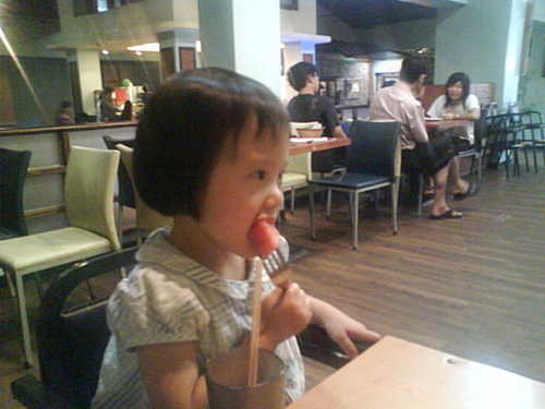 阿謙還不用錢,所以看她很賣力的吃,心情就很好,吃完零食又吃水果,一個嘴巴動個不停,真像我,幸好身材像黑肉,以後不用擔心減肥問題,不過也難說,因為大姐姐小時候也是這樣的身材呀~