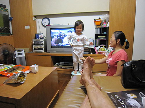 確定她的身體有被扶著後,她就會把腳勾起來。