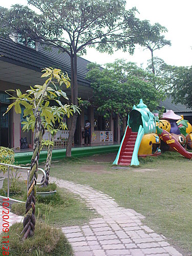 校園的一角. 我在謙謙上課的第一天就決定要讓她讀這裏了,因為老師不只跟她培養感情,還叫班上的小朋友一起帶阿謙玩. 推車子來跟謙謙玩,雖然她不願意,但我們都有感受到老師跟班上同學的熱情跟愛心. 其中的阿瑄瑄很棒. 下次再來拍她的照片,介紹一下這個大方且熱情的同學.